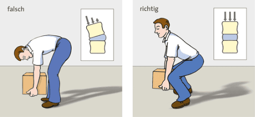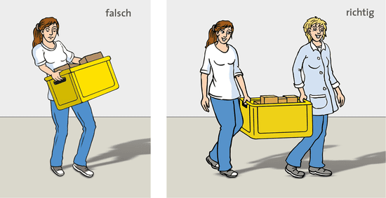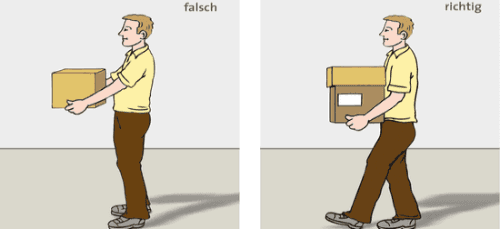 Wenn ihr schwere und sperrige Waren allein transportiert, bewegt ihr euch oft ruckartig. Ruckartige Bewegungen belasten eure Wirbelsäule sehr. Daher gilt: Wenn es irgendwie geht, holt euch Hilfe! Führt diese Bewegungen kontrolliert (eher langsam) durch!